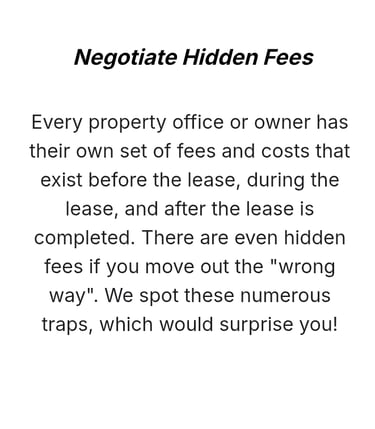 "Our Tenant Agents represent and work for only you, negotiate costs and terms for you, and do not help property owners make more money."